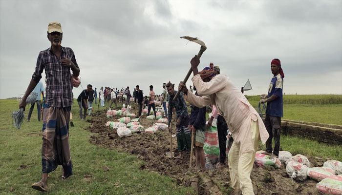 জামালগঞ্জে স্বেচ্ছাশ্রমে ফসল রক্ষা বাঁধ মেরামত