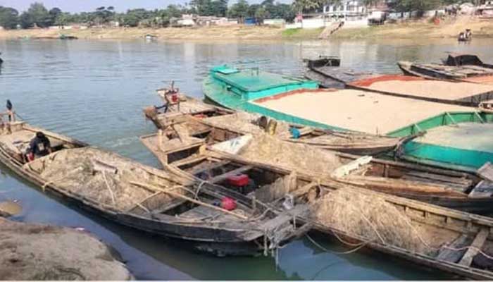 সুনামগঞ্জে সুরমা নদীতে বালুভর্তি নৌকাসহ আটক ৪