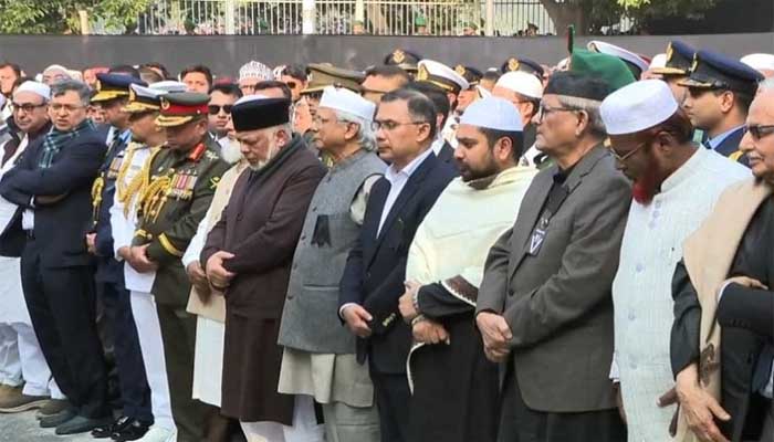এর আগে, বুধবার দুপুর পৌনে ১২টার দিকে কঠোর নিরাপত্তার মধ্য দিয়ে খালেদা জিয়ার মরদেহ জাতীয় সংসদ ভবনের দক্ষিণ প্লাজায় নেওয়া হয়। তাকে বহন করা হয়েছে লাল-সবুজ রঙের জাতীয় পতাকায় মোড়ানো একটি ফ্রিজার ভ্যানে। সেনাবাহিনী হিউম্যান চেইন তৈরি করে রাষ্ট্রীয় প্রোটোকলে তার মরদেহ সেখানে আনা হয়।