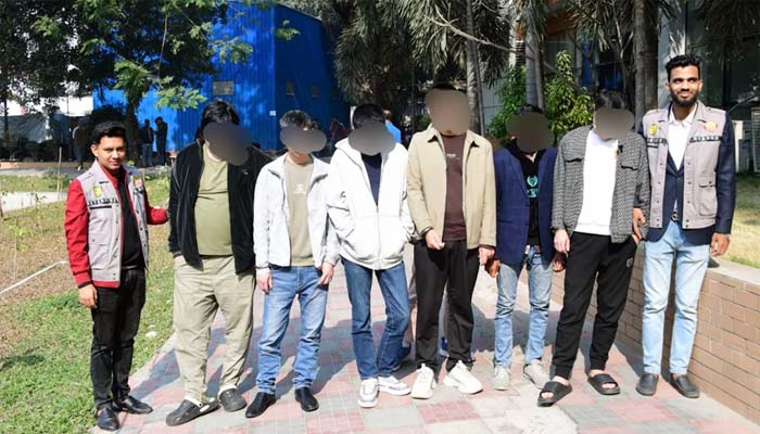 ঢাকার বসুন্ধরা আবাসিক এলাকা এবং উত্তরা পশ্চিম থানা এলাকায় সপ্তাহব্যাপী অভিযানে ঢাকা মহানগর পুলিশের (ডিএমপি) গোয়েন্দা শাখার সাইবার ইউনিট পাঁচ চীনা নাগরিকসহ একটি অনলাইন প্রতারক চক্রের আট সদস্যকে গ্রেপ্তার করেছে।