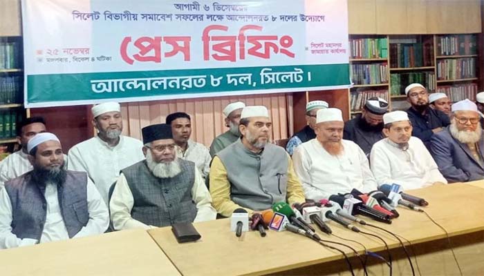 অপরদিকে জামায়াত ও খেলাফত মজলিসের নেতৃত্বাধীন আট দলের নেতারা আগামী ৪ ডিসেম্বর আলিয়া মাদ্রাসা মাঠে বিভাগীয় মহাসমাবেশ করবেন; যার মূল দাবি হলো- জুলাই জাতীয় সনদ বাস্তবায়ন, লেভেল প্লেয়িং ফিল্ডসহ ৫ দফা দাবি এবং গণভোটে ‘হ্যাঁ’ বিজয় নিশ্চিত করা। সমাবেশ সফলের জন্য আট দলের ১৩ সদস্যের লিয়াজোঁ কমিটি গঠন করা হয়েছে। সমাবেশ সফল করতে সিলেটে অবস্থান করছেন খেলাফত মজলিসের কেন্দ্রীয় মহাসচিব মোহাম্মদ মুনতাসির আলীসহ অন্যান্য শরিক দলের সিনিয়র নেতারা।