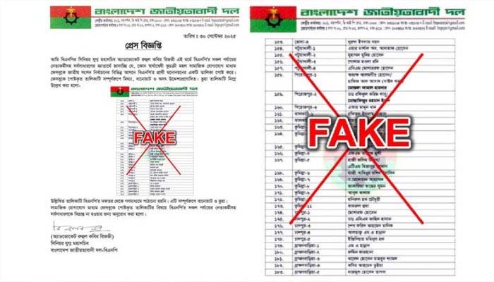 তিনি আরও বলেছেন, উল্লিখিত তালিকাটি বিএনপির দফতর থেকে গণমাধ্যমে পাঠানো হয়নি। এটি সম্পূর্ণরূপে বানোয়াট ও ভুয়া। সামাজিক যোগাযোগ মাধ্যম ফেসবুকে পোস্টকৃত তালিকাটির বিষয়ে বিএনপির সকল পর্যায়ের নেতাকর্মীসহ সর্বসাধারণকে বিভ্রান্ত না হওয়ার জন্য অনুরোধ করা হলো।