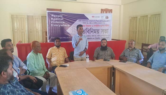 গোলাপগঞ্জে দি হাঙ্গার প্রজেক্টের পিস ফ্যাসিলিটেটর গ্রুপ (পিএফজি) গোলাপগঞ্জের উদ্যোগে সংঘাত নয়, শান্তি ও সস্প্রীতির বাংলাদেশ গড়ি স্লোগানকে সামনে রেখে সহিংসতা নিরসন ও সম্প্রীতি স্থাপন শীর্ষক মতবিনিময় সভা অনুষ্ঠিত হয়েছে।