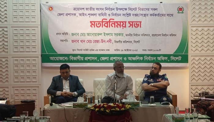 রোববার দুপুরে সিলেটের সার্কিট হাউজে ত্রয়োদশ জাতীয় নির্বাচন উপলক্ষে সিলেট বিভাগের সকল জেলা প্রশাসক, আইনশৃঙ্খলা বাহিনী ও নির্বাচন সংশ্লিষ্ট দপ্তরের কর্মকর্তাদের সাথে মতবিনিময়কালে এ কথা জানান৷