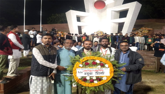 একুশে ফেব্রুয়ারি মহান শহীদ দিবস ও আন্তর্জাতিক মাতৃভাষা দিবরে প্রথম প্রহরে ঢল নেমেছিলো সিলেট কেন্দ্রিয় শহীদ মিনারে।
