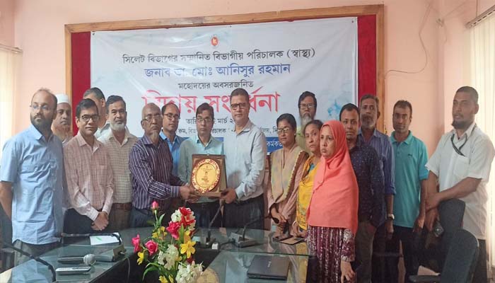 শনিবার (৮ মার্চ ২০২৬) স্বাস্থ্য অধিদপ্তর-এর অধীন বিভাগীয় পরিচালক (স্বাস্থ্য) কার্যালয়ের কনফারেন্স রুমে এ সংবর্ধনা অনুষ্ঠানের আয়োজন করা হয়। বিভাগীয় পরিচালক (স্বাস্থ্য) কার্যালয়, সিলেট বিভাগের কর্মকর্তা ও কর্মচারীরা যৌথভাবে অনুষ্ঠানের আয়োজন করেন।
