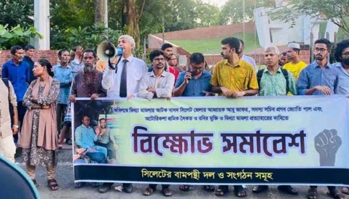বাসদ সিলেট জেলার আহ্বায়ক আবু জাফর ও সদস্য সচিব প্রণব জ্যোতি পাল, এবং শ্রমিক নেতা সৈকত ও রনিকে গ্রেফতারের প্রতিবাদে সিলেটে বিক্ষোভ সমাবেশ করেছে বামপন্থী দল ও সংগঠনগুলো। বাম গণতান্ত্রিক জোট সিলেট জেলা ও বাসদ (মার্কসবাদী) সিলেট জেলার উদ্যোগে আজ রোববার বিকেল ৪টায় এই সমাবেশ অনুষ্ঠিত হয়।