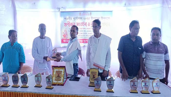 শুরুতে গীতা পাঠ করেন পরিমল দেবনাথ পরে সকল অতিথিকে ক্রেস্ট ও উত্তরীয় প্রদান করা হয় এবং সংবর্ধিত ১১ জন গুণী ব্যক্তিকে ক্রেস্ট, উত্তরীয় ও উপহার প্রদান করা হয়। প্রধান অতিথির বক্তব্যে নির্বাহী অফিসার মাখন চন্দ্র সূত্রধর বলেন, শারদীয় দুর্গোৎসব উপলক্ষে এ ধরণের একটি ব্যতিক্রমধর্মী অনুষ্ঠান সত্যিই প্রশংসনীয় উদ্যোগে। লক্ষ্মীপুর সার্বজনীন পূজা মন্ডপ এ ধরনের অনুষ্ঠান করায় অন্য মন্ডপের জন্য অনুকরণীয়। এসময় মন্ডপের ভক্তবৃন্দসহ এলাকায় গণ্যমান্য বক্তিবর্গ উপস্থিত ছিলেন।