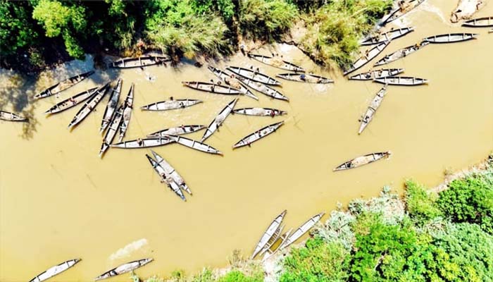 সরেজমিন নদী তীরবর্তী এলাকা ঘুরে দেখা যায়, প্রশাসনের চোখ ফাঁকি দিতে নাপিতখাল নদীর সরু অংশ ধরে মুল নদীতে প্রতিদিন শতাধিক বারকি নৌকা প্রবেশ করছে। এসব নৌকায় থাকা শ্রমিকরা বালু শ্রমিকদের সহায়তায় অবৈধভাবে উত্তোলন করা বালু নিয়ে যাচ্ছেন বিক্রির উদ্দেশ্যে। ইজারা বহির্ভুত এই নদীর তীরবর্তী এলাকার অবৈধ বালুর ব্যবসা নিয়ন্ত্রণকারীরা সেই শ্রমিকদের কাছ থেকেও নৌকাপ্রতি এক হাজার টাকা করে চাঁদা আদায় করছে বলে অভিযোগ রয়েছে।
