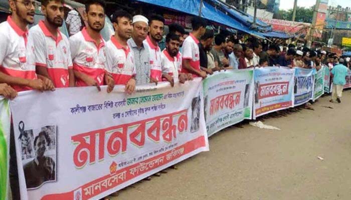 ব্যবসায়ী নুমান হত্যার প্রতিবাদে কালিগঞ্জে মানববন্ধন