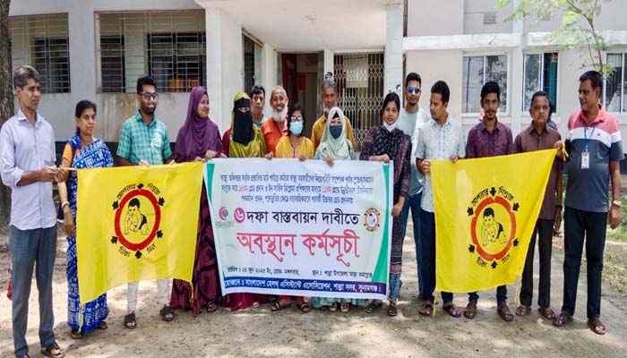 শাল্লায় ৬ দফা দাবিতে স্বাস্থ্য সহকারীদের অবস্থান কর্মসূচি