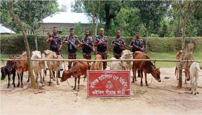 হবিগঞ্জে সীমান্তে প্রায় দুই কোটি টাকার গরু ও মালামাল জব্দ