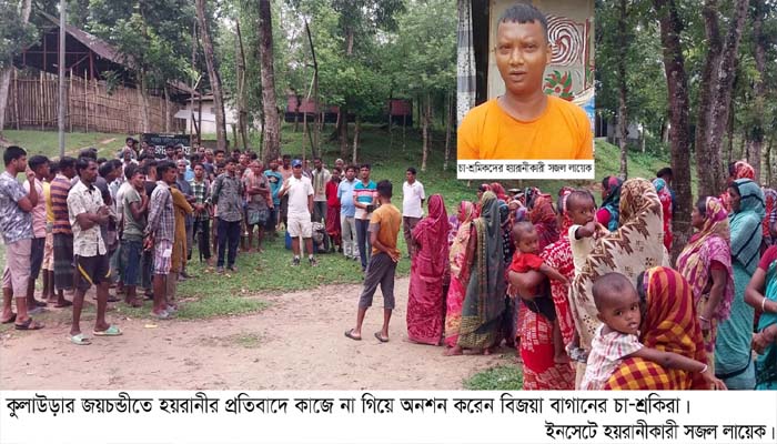 কুলাউড়ায় হয়রানি করার প্রতিবাদে বিজয়া চা-বাগান শ্রমিকদের অনশন!