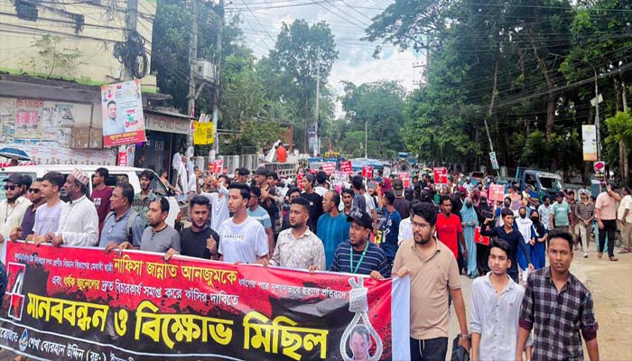 স্কুল ছাত্রী নাফিজা হত্যাকারী জুনেল'র ফাঁসির দাবীতে মৌলভীবাজারে বিক্ষোভ