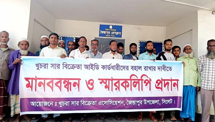 জৈন্তাপুরে খুচরা সার–ডিলার লাইসেন্স বহাল রাখার দাবিতে মানববন্ধন