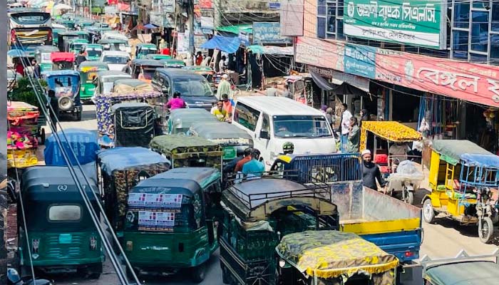 অপরিকল্পিতভাবে দোকানপাটে কুলাউড়া পৌরশহরে যানজট যেন নিত্যসঙ্গী