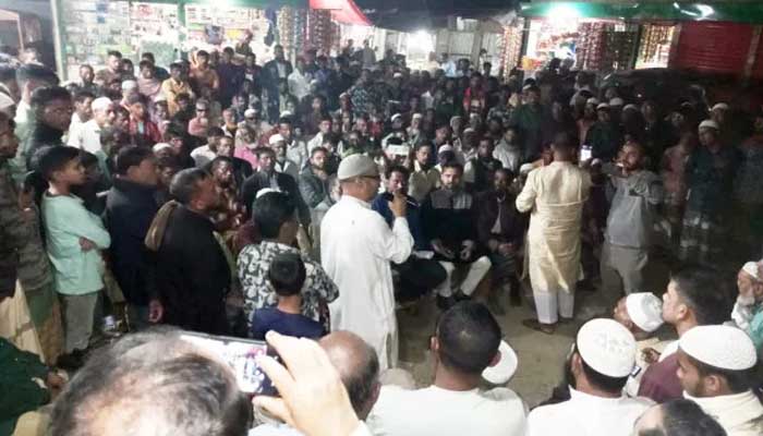 ভুয়া ফেসবুক আইডি থেকে মিথ্যা অপপ্রচারের প্রতিবাদে জামালগঞ্জে বিক্ষোভ