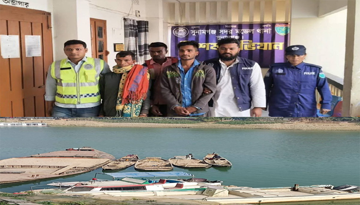 ধোপাজান নদীতে বালুভর্তি চারটি নৌকাসহ তিনজন আটক