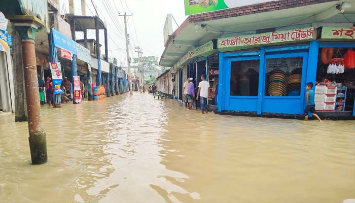 ‘নদীর পানিতে বাজারে এখন হাঁটুপানি’