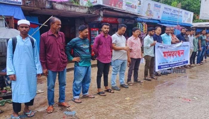 সুনামগঞ্জ শহরে অটোরিকশার যৌক্তিক ভাড়া নির্ধারণের দাবিতে মানববন্ধন