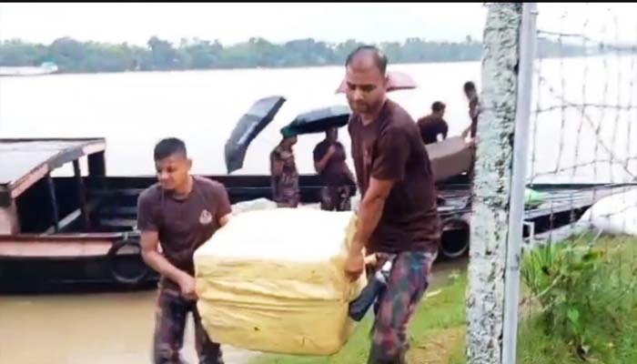 সুনামগঞ্জে নৌপথে টাস্কফোর্সের অভিযানে ভারতীয় শাড়িসহ পণ্য জব্দ