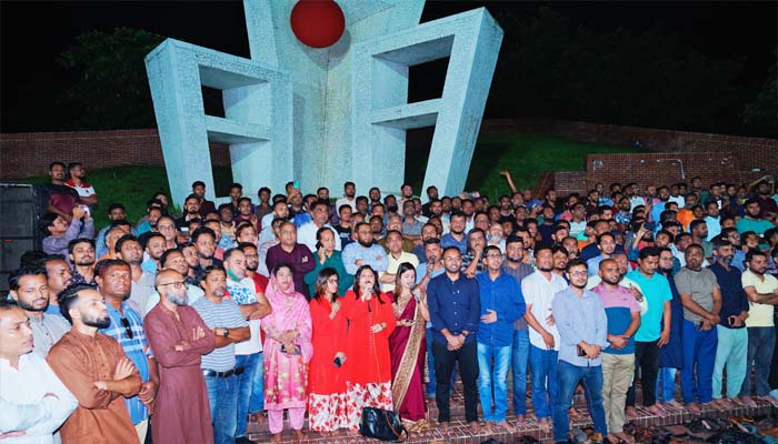প্রতিবাদে জাসাসের সমবেত কণ্ঠে জাতীয় সংগীত পরিবেশন