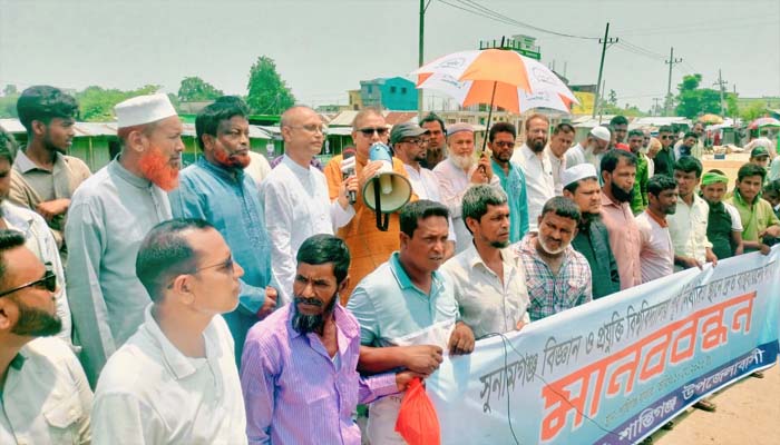 পূর্ব নির্ধারিত স্থানে সুবিপ্রবি দ্রুত বাস্তবায়নের দাবিতে মানববন্ধন