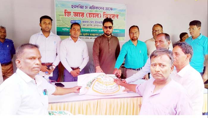 কমলগঞ্জে চা শ্রমিকদের মধ্যে জিআরের চাল বিতরণ