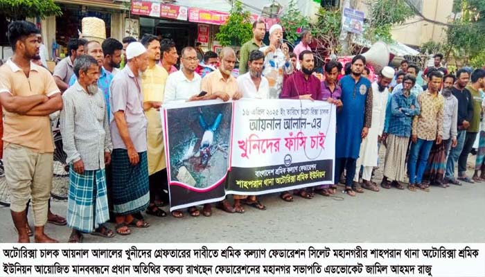 অটোরিক্সা চালক আয়নালের খুনীদের ৭২ ঘন্টার মধ্যে গ্রেফতারের দাবিতে মানববন্ধন