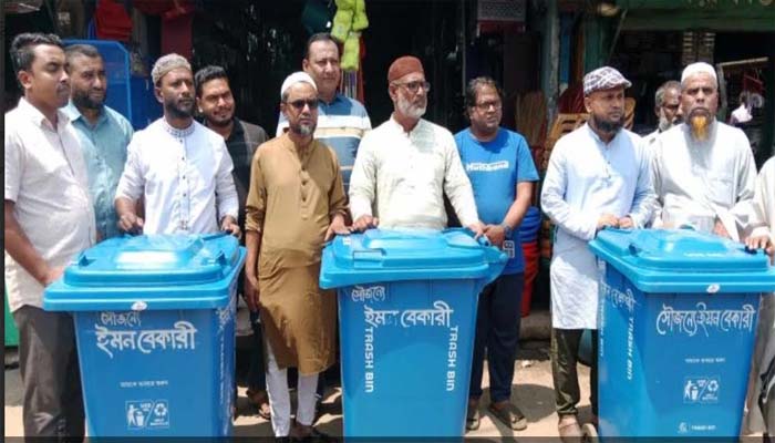 তাহিরপুর বাদাঘাট বাজারে ময়লা আবর্জনা ডাস্টবিনে ফেলার আহবান