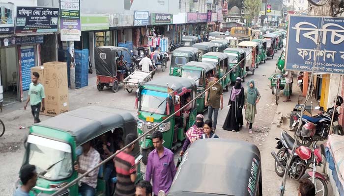 কমলগঞ্জে অবৈধ অটো, টমটমে সড়কের দু’পাশ দখল, যানজটে চরম দুর্ভোগে পথচারী