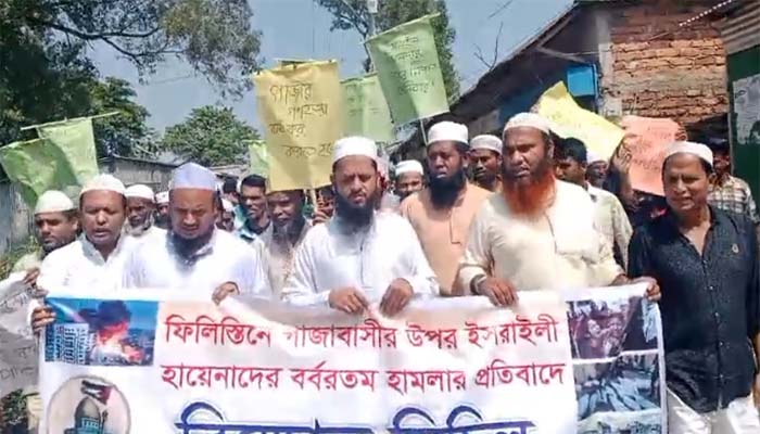গাজায় গণহত্যা বন্ধের দাবিতে কুলাউড়ায় জাসদের বিক্ষোভ মিছিল