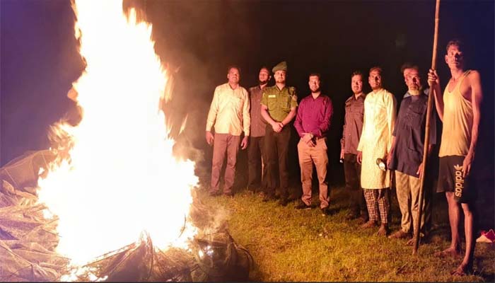 টাংগুয়ার হাওরে অভিযান, ৬ লক্ষাধিক টাকার জালে আগুন