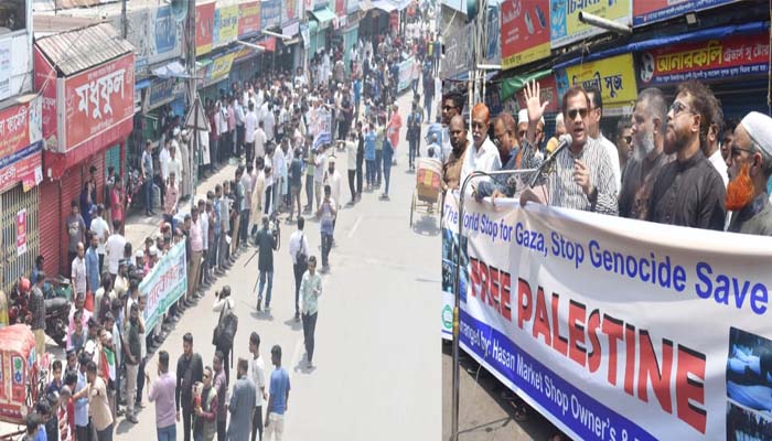 হাসান মার্কেট দোকান মালিক ও ব্যবসায়ী সমিতির মানববন্ধন ও বিক্ষোভ সমাবেশ অনুষ্ঠিত