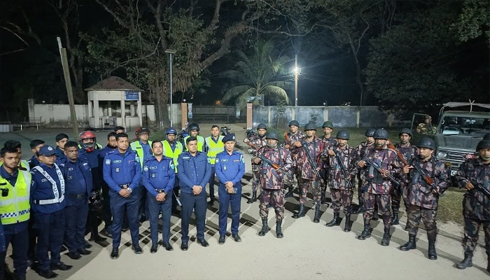 নির্বাচন সামনে রেখে চুনারুঘাটে যৌথ বাহিনীর মহড়া