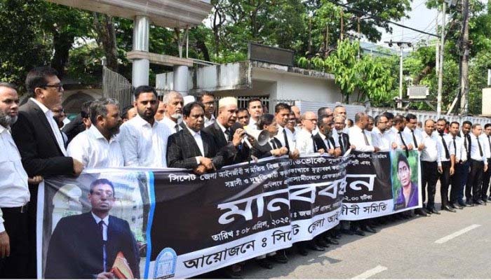 অ্যাডভোকেট সুজন মিয়া হত্যার প্রতিবাদে জেলা আইনজীবী সমিতির মানববন্ধন