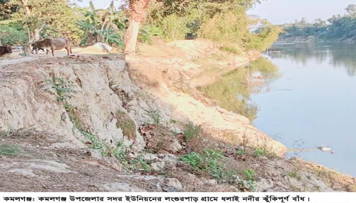 কমলগঞ্জে খরস্রোতা ধলাই নদীর ভাঙ্গা বাঁধের কাজ শুরু হয়নি