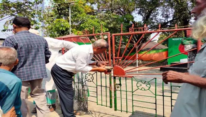 সুনামগঞ্জে তালা ভেঙ্গে শহিদ মিনারে পুষ্পস্তবক অর্পণ