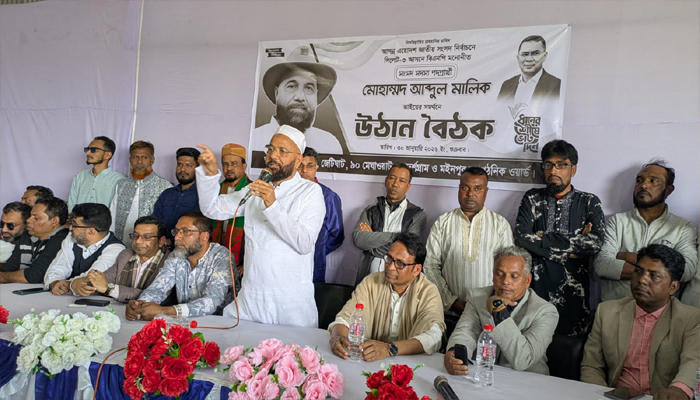 ফেঞ্চুগঞ্জের জেটিঘাটে ধানের শীষের প্রার্থী এম এ মালিকের সমর্থনে উঠান বৈঠক