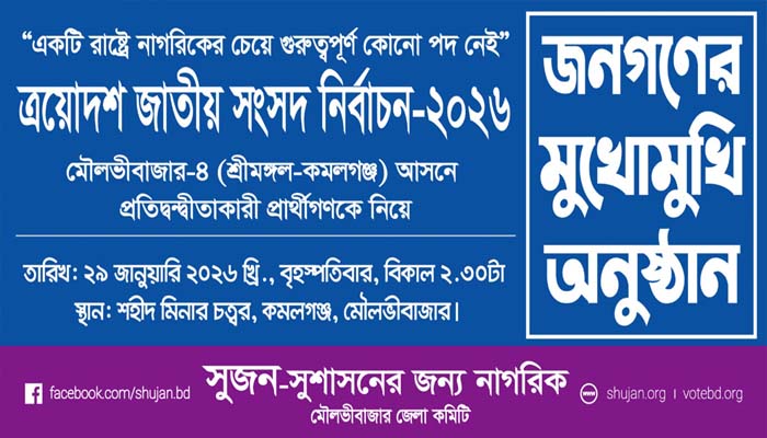 কমলগঞ্জে সুজন’র ‘জনগণের মুখোমুখি’ অনুষ্ঠান স্থগিত
