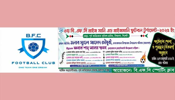 বিশ্বনাথে ৩য় বিএফসি ফুটবল টুর্নামেন্টের ফাইনাল কাল