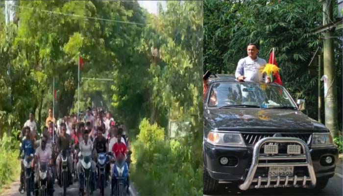দিরাইয়ে পাবেল চৌধুরীকে স্বাগত জানিয়ে বিশাল মোটর শোভাযাত্রা
