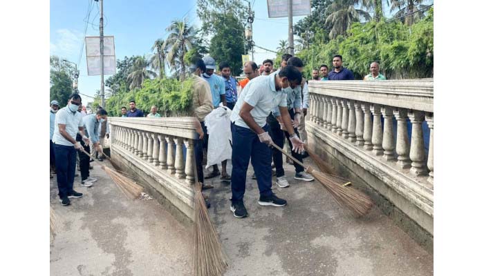 নগরীতে সড়ক পরিচ্ছন্ন করতে ঝাড়ু হাতে ডিসি