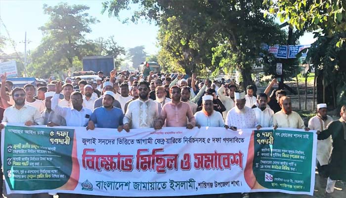 ৫ দফা গণদাবিতে শান্তিগঞ্জে জামায়াতের বিক্ষোভ মিছিল