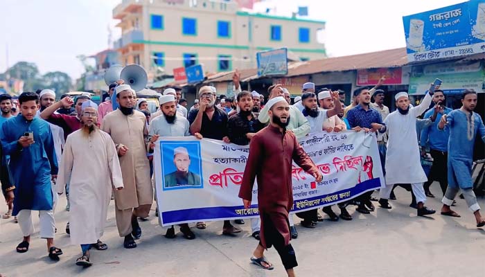 মাওলানা মুশতাক হত্যার প্রতিবাদে শান্তিগঞ্জে বিক্ষোভ মিছিল ও সমাবেশ