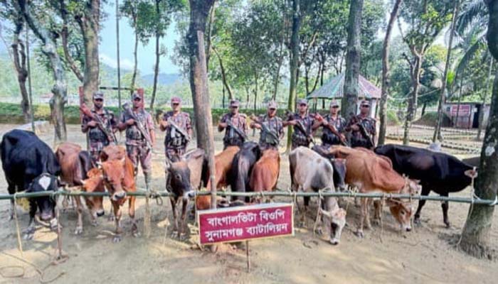 মধ্যনগর সীমান্তে ১২টি ভারতীয় গরু আটক