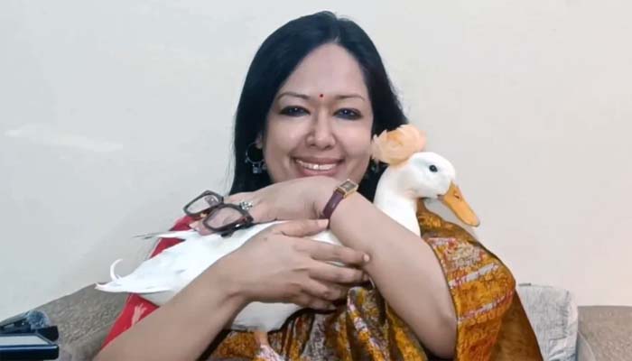 ভোটে জিতে হাঁস কোলে নিয়ে সংবাদ সম্মেলনে এসে যা বললেন রুমিন ফারহানা