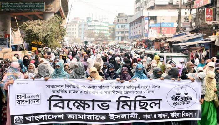 রাজধানীতে মহিলা জামায়াতের বিক্ষোভ