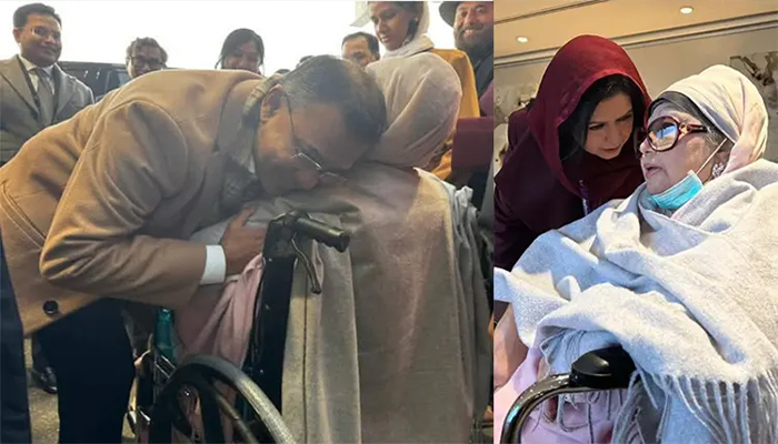 লন্ডনে পৌঁছেছেন খালেদা জিয়া, মাকে স্বাগত জানালেন তারেক রহমান