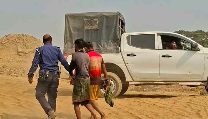 জাফলংয়ে টাস্কফোর্সের অভিযানে ৫৫ হাজার ঘনফুট বালু জব্দ, আটক ৯